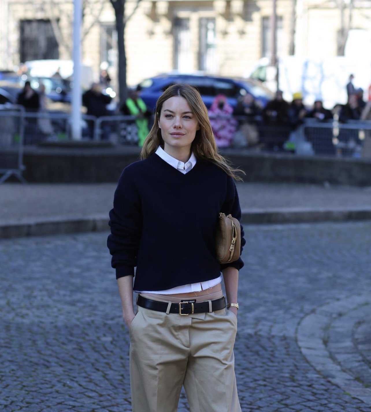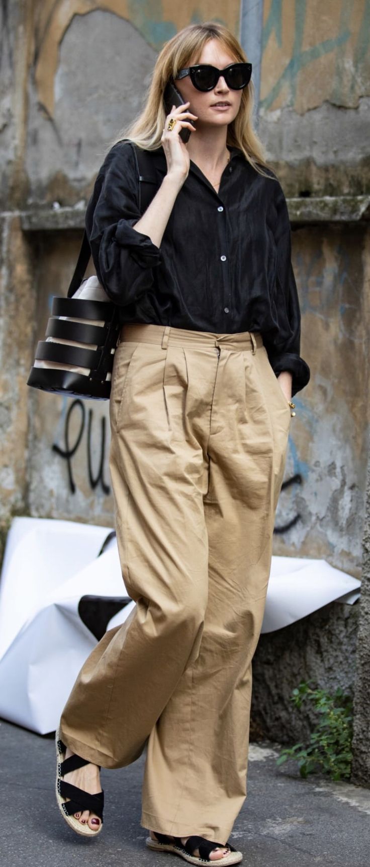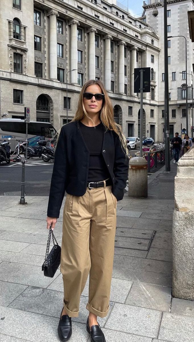 - 베이지 팬츠 + 블랙 벨트 + 블랙 슈즈